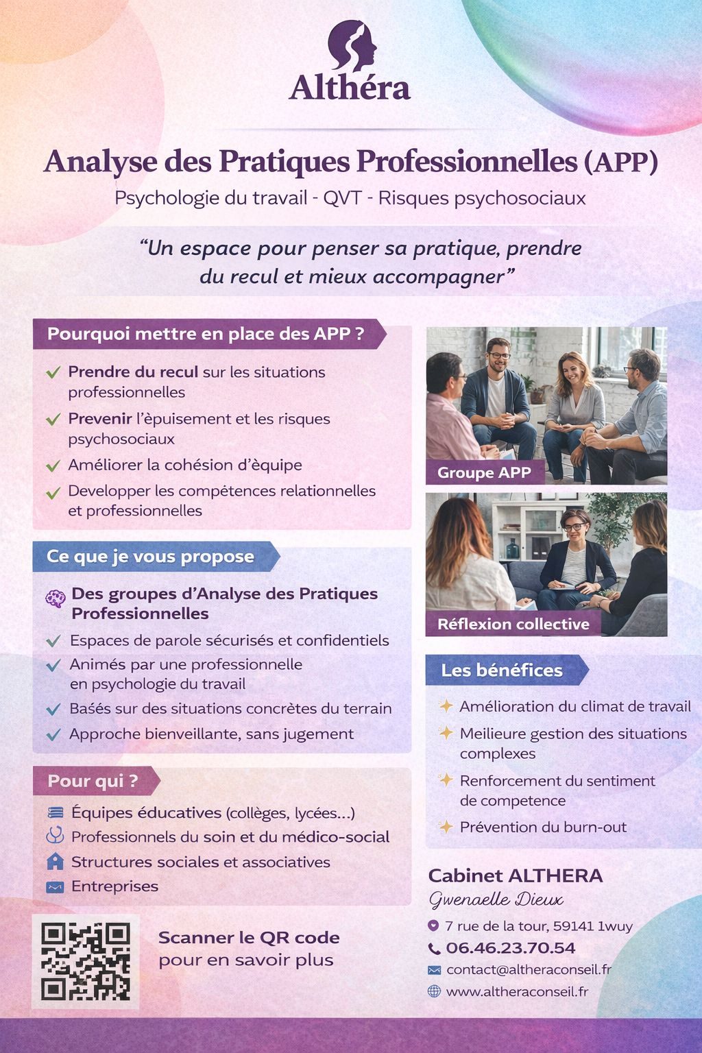 Les analyses de pratiques professionnelles constituent le cœur de notre accompagnement. Cette spécialité, centrée sur le réel terrain, transforme les difficultés en leviers concrets pour vos équipes et votre organisation.